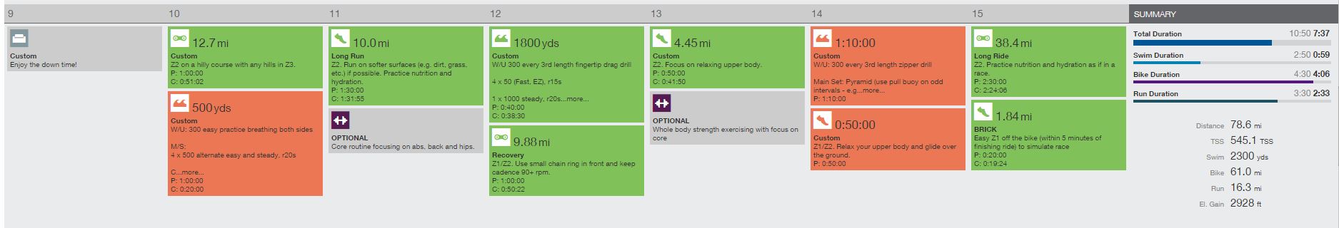 Here’s the illegible training summary for my week. There are only 3 red blocks this time!! I didn’t post last weeks’ because yeah…..that was a lot of red. Now let’s break it down!